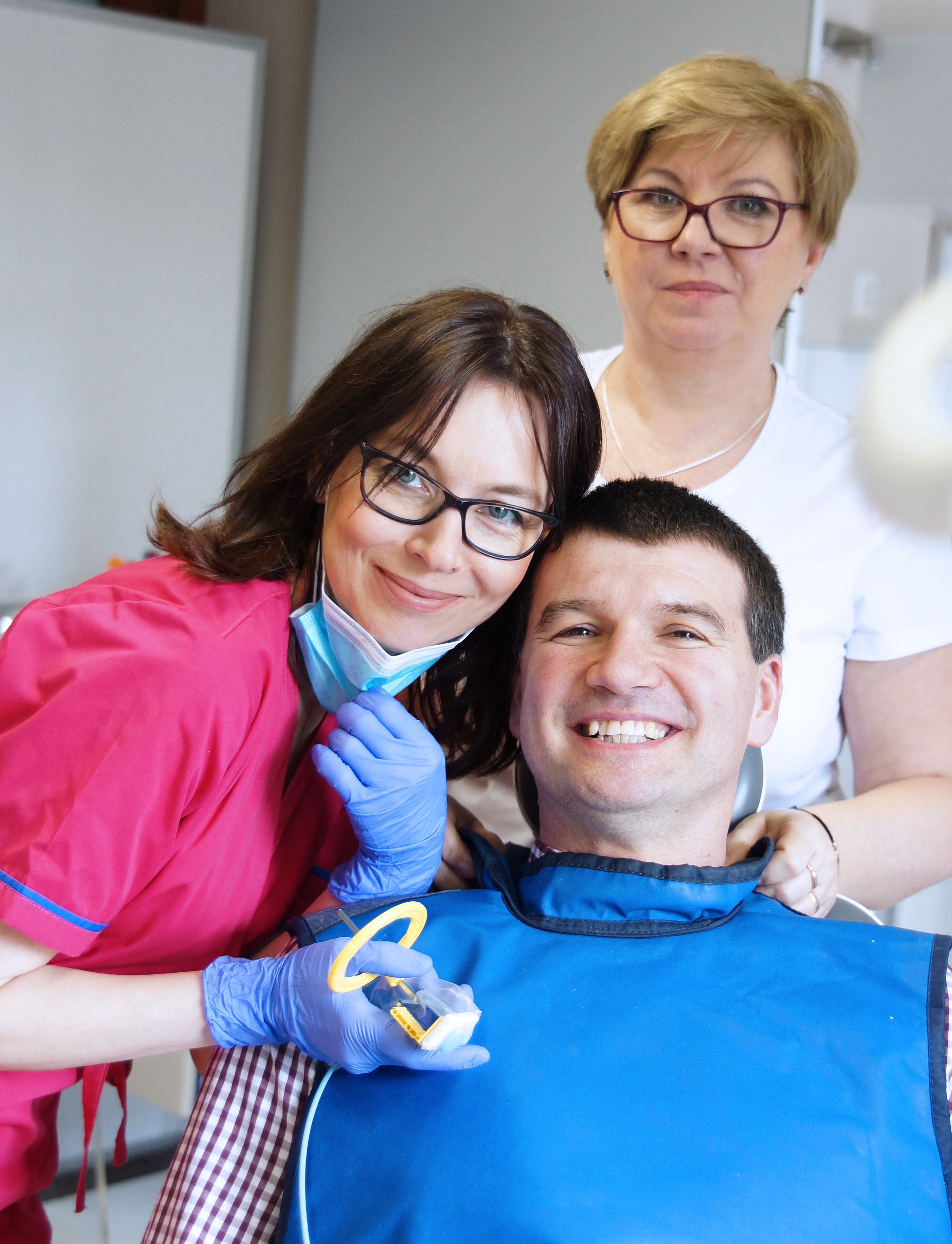 i z uśmiechem. W naszą pracę wkładamy czas i serce, bo wiemy jak ważne jest poczucie bezpieczeństwa, ciepła atmosfera i zaufanie do lekarza dentysty. Dzięki temu wspólnie pokonujemy drogę leczenia. Nieustannie inwestujemy w swój rozwój zawodowy, a także unowocześniamy technologicznie gabinet. Jesteśmy przekonani, że nasz Pacjent jest tego wart.